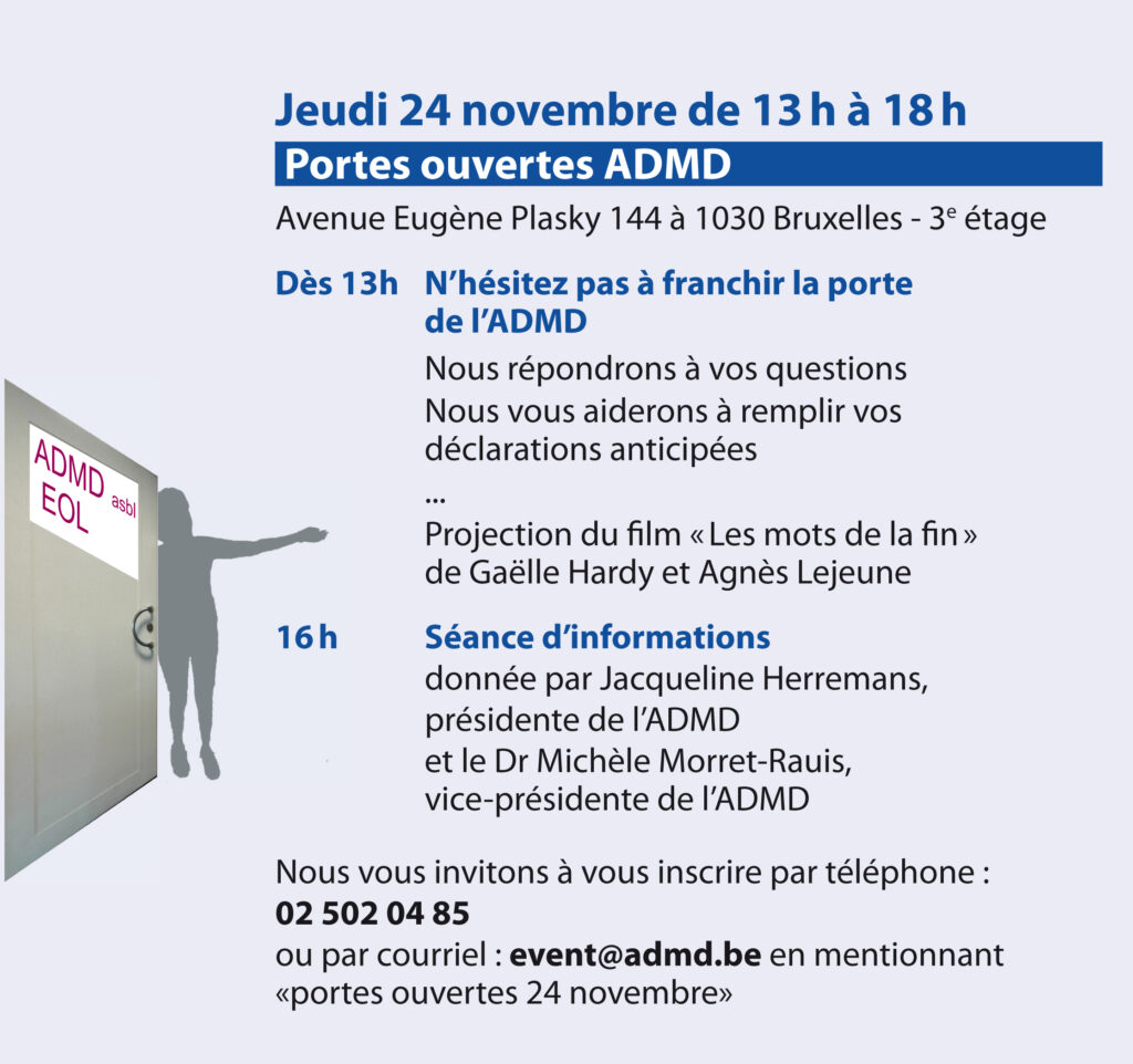 Suite aux mesures de confinement dans le cadre de la lutte contre le covid-19, l’ADMD adopte provisoirement de nouvelles dispositions :